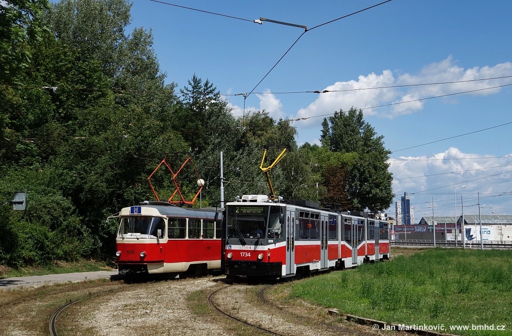 Fotografie ČKD Tatra T3 1525 DPMB | ČKD Tatra KT8D5N 1734 DPMB | Brno-Horní Heršpice, Vídeňská | Fotogalerie BMHD