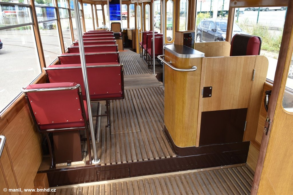 Interiér historické tramvaje 4MT ev. č. 134 po renovaci