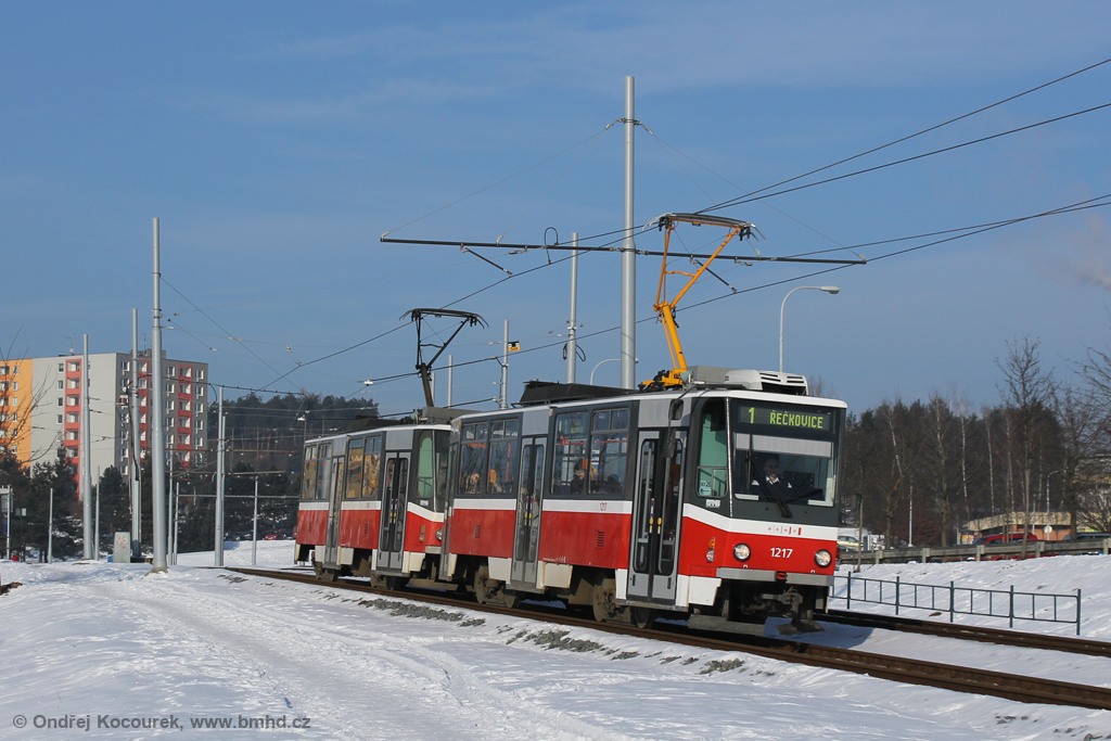 Fotografie ČKD DS T6A5 1217 DPMB | ČKD DS T6A5 1218 DPMB | Brno-Bystrc, Vejrostova | Fotogalerie BMHD