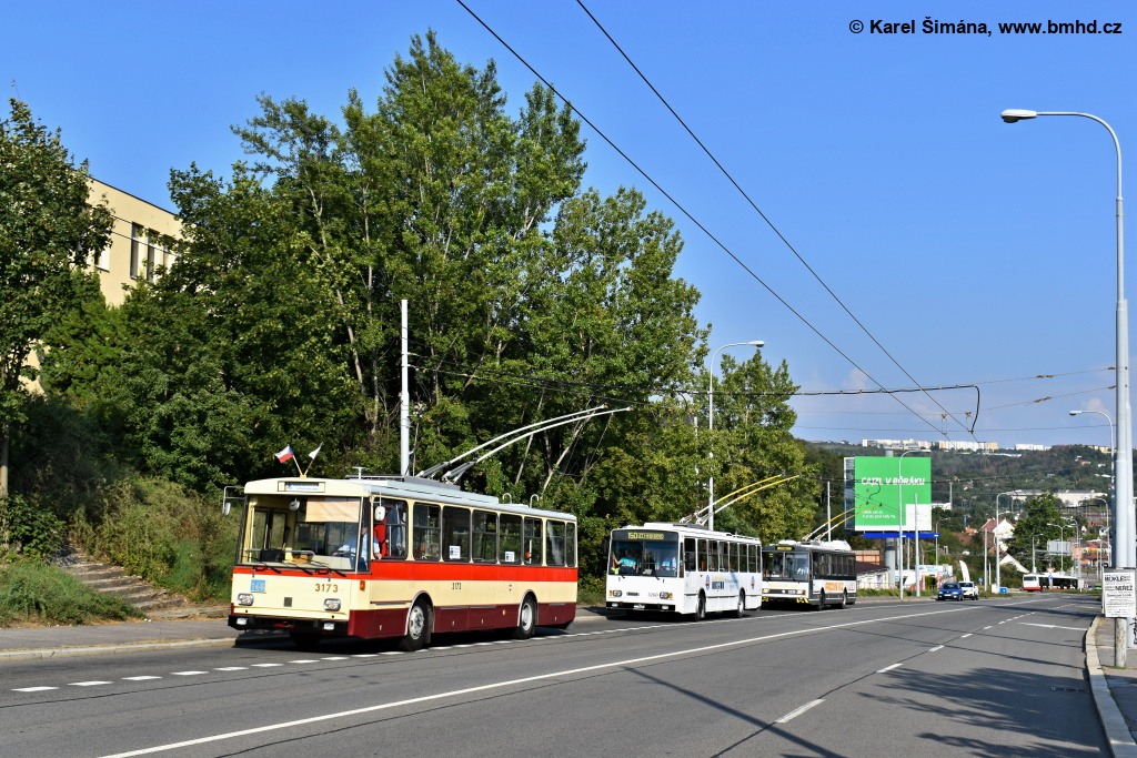 Fotografie Škoda 14 Tr01 3173 Technické muzeum v Brně | Škoda 14 Tr14 3260 DPMB | Škoda 14 Tr10/6 3239 DPMB | Brno-Husovice, Provazníkova | Fotogalerie BMHD