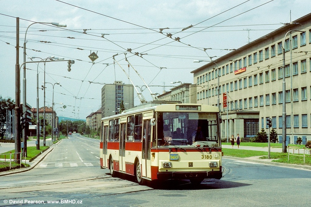 Běžný pohled do nedělní Leninovy ulice (dnešní Kounicovy ulice) v roce 1984 tvoří nulový provoz automobilové dopravy, hotel Družba, vysokoškolská kolej Leninova, VTA AZ (Vojenská technická akademie Antonína Zápotockého) a trolejbus Škoda 14Tr01. Ten tehdy jako zástupce zcela nového typu trolejbusu zajišťuje výkon na prvním vlaku linky 140 vedoucí z Bystrce na náměstí Rudé armády (dnešní zastávku Českou).