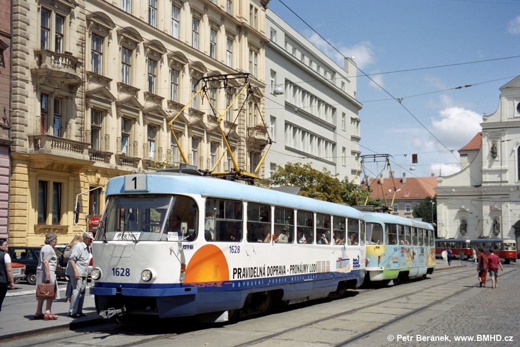 Fotografie ČKD Tatra T3SUCS 1628 DPMB | ČKD Tatra T3SUCS 1629 DPMB | Brno-střed, Joštova | Fotogalerie BMHD