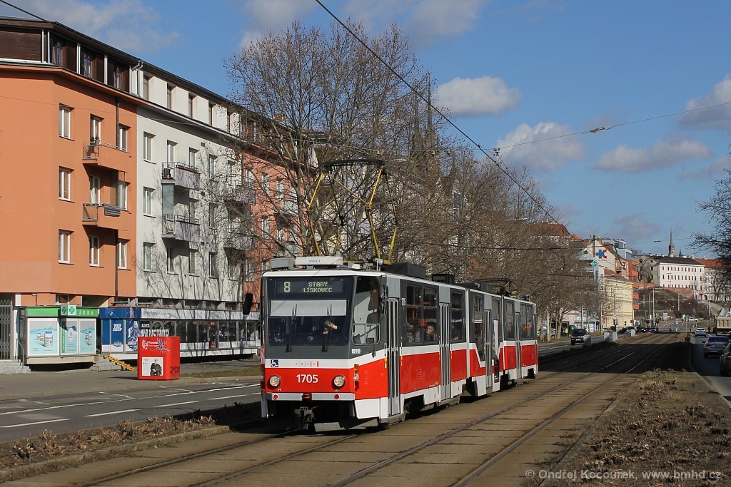 Fotografie ČKD Tatra KT8D5R.N2 1705 DPMB | Brno-Staré Brno, Nové sady | Fotogalerie BMHD