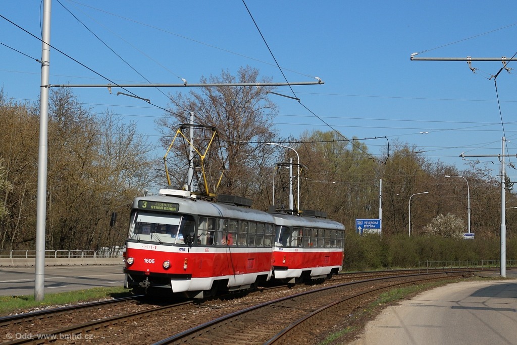 Fotografie ČKD Tatra T3G 1606 DPMB | ČKD Tatra T3G 1608 DPMB | Brno-Komín, Bystrcká | Fotogalerie BMHD