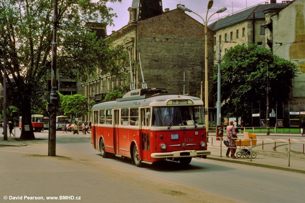 Mezi lety 1982 a 1985 byly trolejbusové linky 131, 133 a 141 z důvodu výluky u hlavního nádraží ukončeny blokovou smyčkou na třídě 1. máje (dnešní ulice Benešova) a ulici Koliště. Osoby u žlutého kočárku se však nenechaly vyrušit průjezdem "tyristoráku" 3138, který tehdy využil tuto blokovou smyčku k vykonání obratu na tehdy necelé dva roky staré lince 141 obsluhující slatinské sídliště.