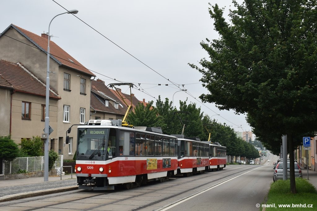 Fotografie ČKD DS T6A5 1209 DPMB | ČKD DS T6A5 1212 DPMB | ČKD DS T6A5 1210 DPMB | Brno-Řečkovice, Banskobystrická | Fotogalerie BMHD