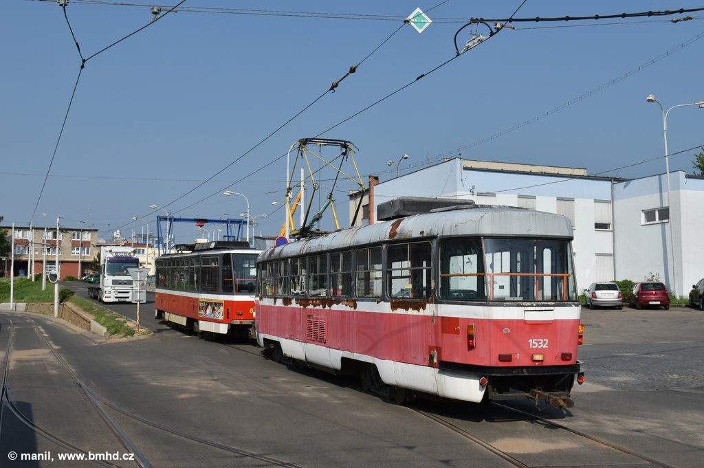Fotografie ČKD Tatra T3M 1532 DPMB | ČKD Tatra T6A5 1222 DPMB | Brno-Medlánky, vozovna Medlánky | Fotogalerie BMHD