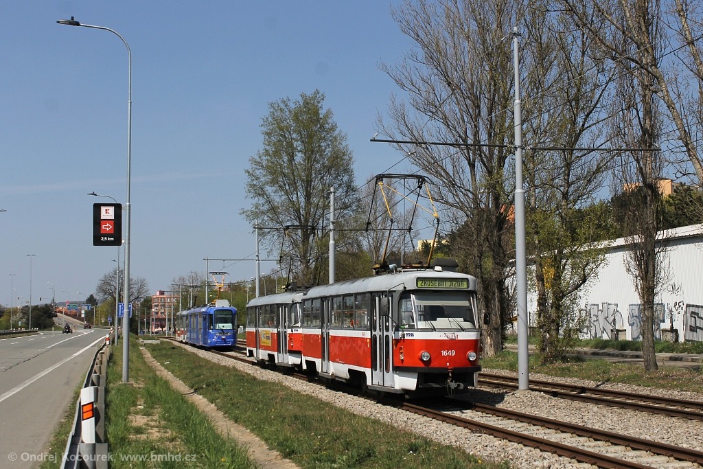 Fotografie ČKD Tatra T3G 1649 DPMB | ČKD Tatra T3G 1650 DPMB | Pragoimex VarioLF2R.E 1101/II DPMB | Pragoimex VarioLFR.E 1616/II DPMB | Brno-Židenice, Ostravská | Fotogalerie BMHD