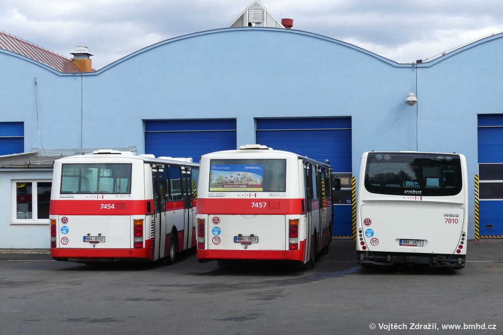 Fotografie Karosa B 931E.1707 7454 (9B4 8702) DPMB | Karosa B 931E.1707 7457 (8B6 1923) DPMB | Irisbus Crossway LE 12M 7810 (8B6 2671) DPMB | Brno-Medlánky, Vozovna Medlánky | Fotogalerie BMHD