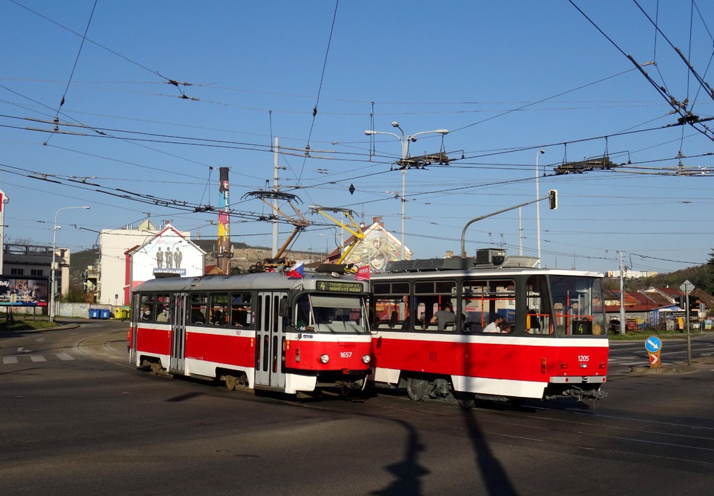 Fotografie Pragoimex T3R.PV 1657/II DPMB | ČKD DS T6A5 1205 DPMB | Brno-Husovice, Tomkovo náměstí | Fotogalerie BMHD