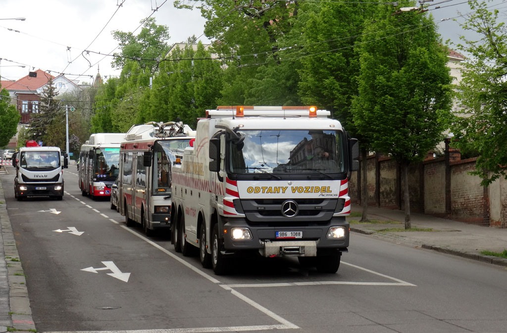 Fotografie Mercedes-Benz Actros 4144 5332 (9B6 1088) DPMB | Škoda 21 Tr 3009 DPMB | Brno-Masarykova čtvrť, Tvrdého | Fotogalerie BMHD