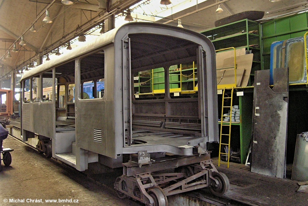 Hrubá stavba zadního článku tramvaje K3R-N 1753.