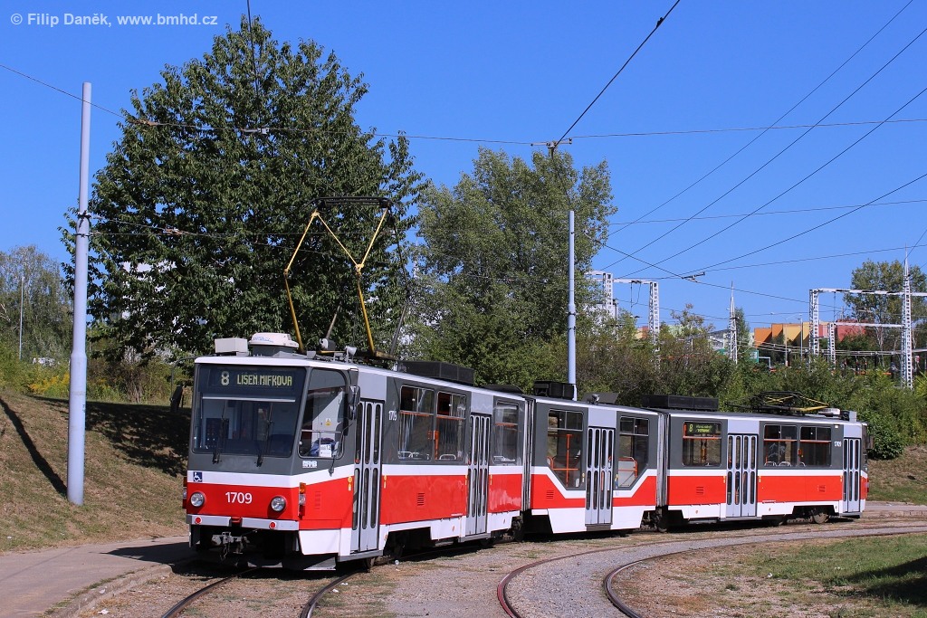 Fotografie ČKD Tatra KT8D5R.N2 1709 DPMB | Brno-Starý Lískovec, Jemelkova | Fotogalerie BMHD