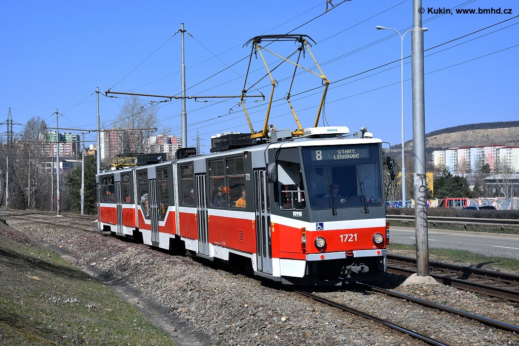 Fotografie ČKD Tatra KT8D5R.N2 1721 DPMB | Brno-Líšeň, Jedovnická | Fotogalerie BMHD