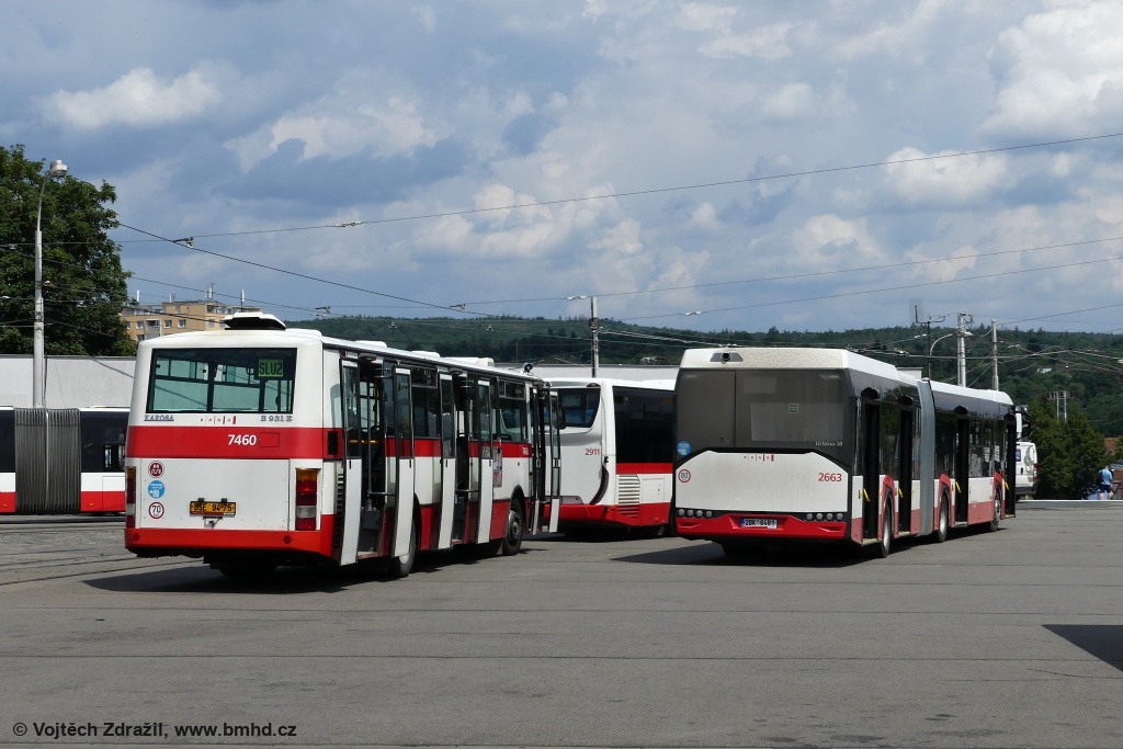 Fotografie Karosa B 931E.1707 7460 (BSE 94-75) DPMB | Solaris Urbino 18 IV 2663/II (2BK 6481) DPMB | Brno-Medlánky, Vozovna Medlánky | Fotogalerie BMHD