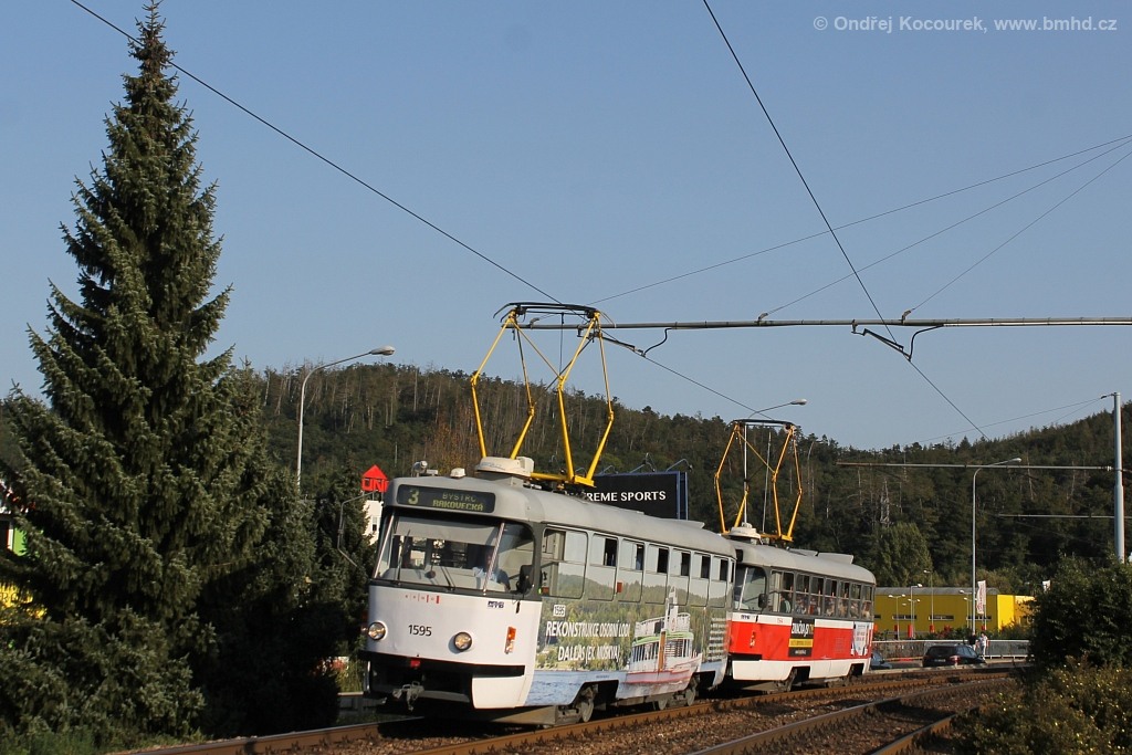 Fotografie ČKD Tatra T3P 1595 DPMB | ČKD Tatra T3P 1564 DPMB | Brno-Bystrc, Obvodová | Fotogalerie BMHD