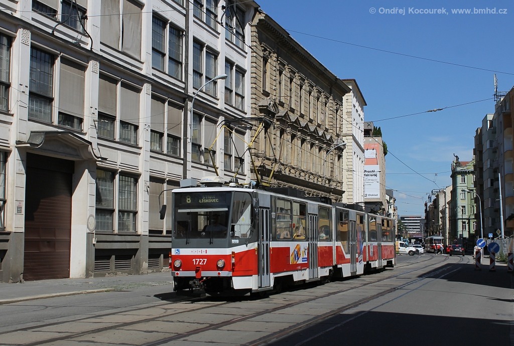 Fotografie ČKD Tatra KT8D5R.N2 1727 DPMB | Brno-Staré Brno, Hybešova | Fotogalerie BMHD