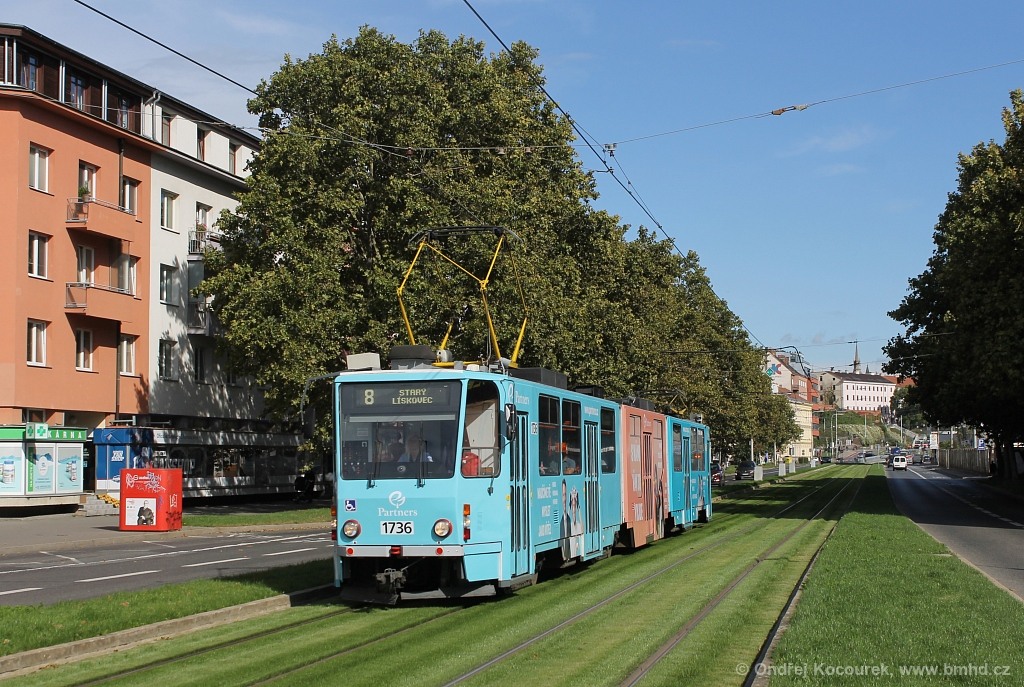 Fotografie ČKD Tatra KT8D5R.N2 1736 DPMB | Brno-Staré Brno, Nové sady | Fotogalerie BMHD