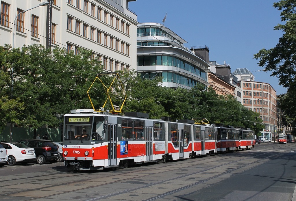 Fotografie ČKD Tatra KT8D5R.N2 1705 DPMB | ČKD Tatra T6A5 1246 DPMB | ČKD DS T6A5 1247 DPMB | Brno-střed, Benešova | Fotogalerie BMHD