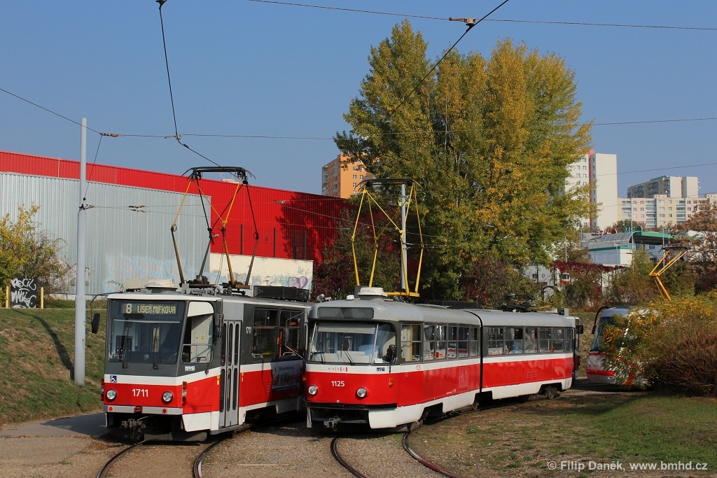 Fotografie ČKD Tatra KT8D5R.N2 1711 DPMB | ČKD Tatra K2YU 1125/II DPMB | Brno-Starý Lískovec | Fotogalerie BMHD