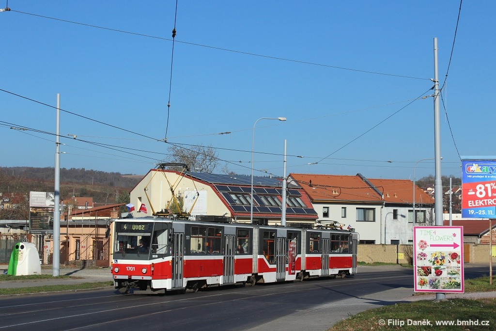 Fotografie ČKD Tatra KT8D5R.N2 1701 DPMB | Brno-Maloměřice, Obřanská | Fotogalerie BMHD