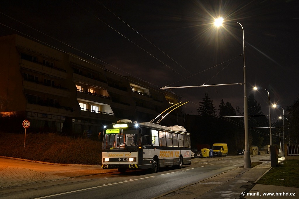 Služební trolejbus 14Tr ev. č. 3239 při nanášení nemrznoucí směsi na troleje