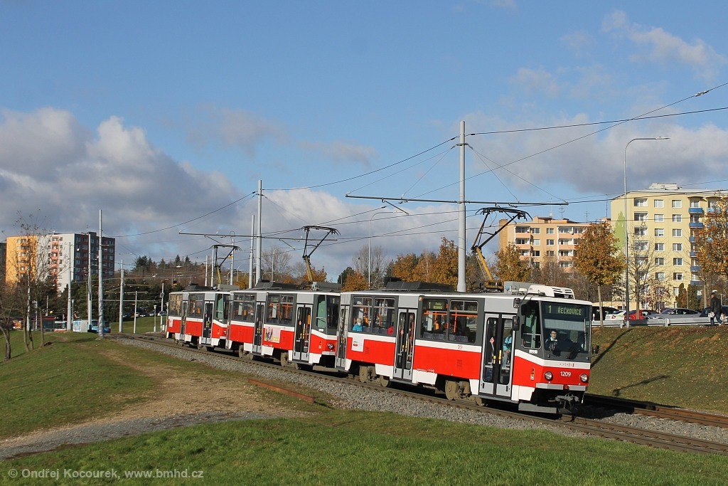 Fotografie ČKD DS T6A5 1209 DPMB | ČKD DS T6A5 1210 DPMB | ČKD DS T6A5 1216 DPMB | Brno-Bystrc, Vejrostova | Fotogalerie BMHD