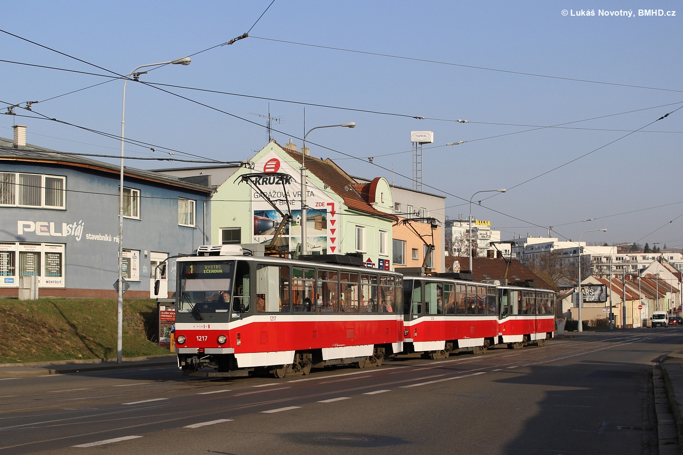 Fotografie ČKD DS T6A5 1217 DPMB | ČKD DS T6A5 1218 DPMB | ČKD DS T6A5 1207 DPMB | Brno-Medlánky, Palackého třída | Fotogalerie BMHD