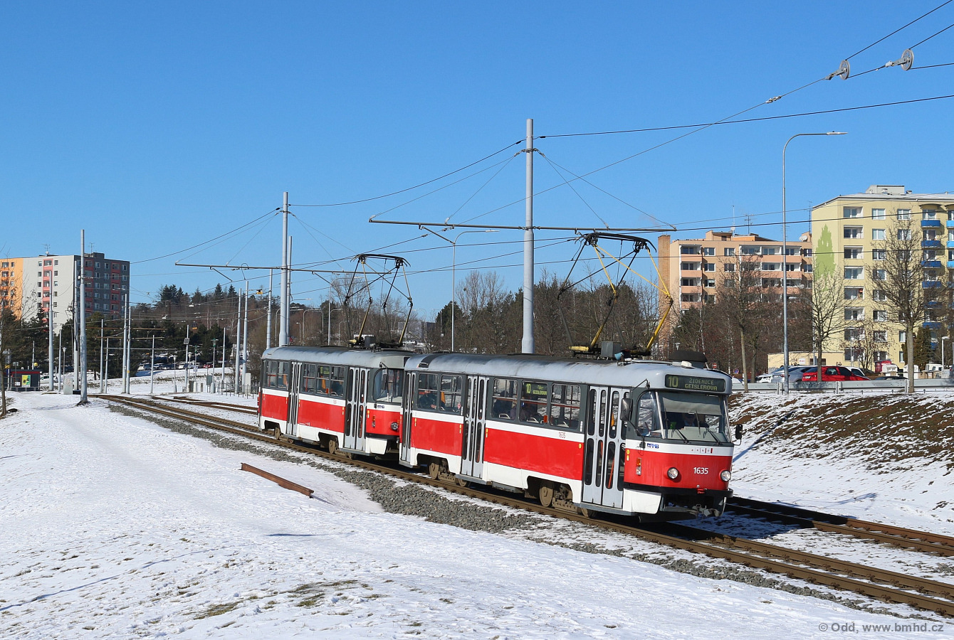 Fotografie ČKD Tatra T3G 1635 DPMB | ČKD Tatra T3G 1636 DPMB | Brno-Bystrc, Vejrostova | Fotogalerie BMHD