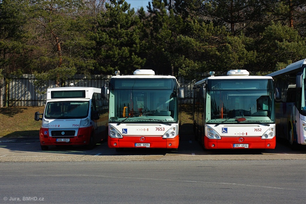Fotografie Fiat MAVE CiBus ENA 3Z MAXI 7504 (6B6 6827) DPMB | Irisbus Citelis 12M 7653 (6B6 6855) DPMB | Irisbus Citelis 12M 7652 (5B7 4532) DPMB | Brno, Vozovna Slatina | Fotogalerie BMHD