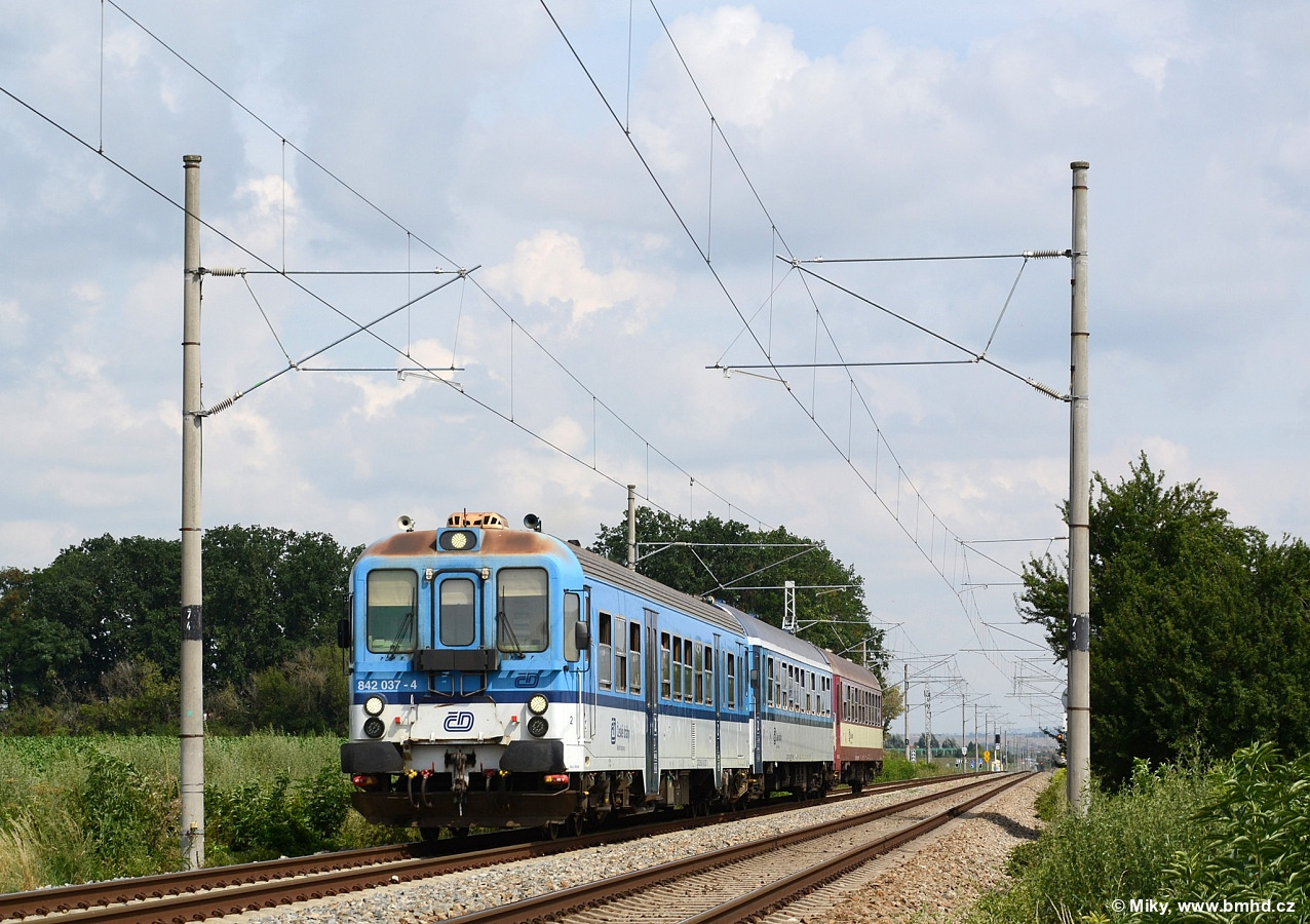 Fotografie Moravskoslezská vagonka 842 842.037-4 České dráhy | Šlapanice, Šlapanice zastávka - Brno-Slatina | Fotogalerie BMHD