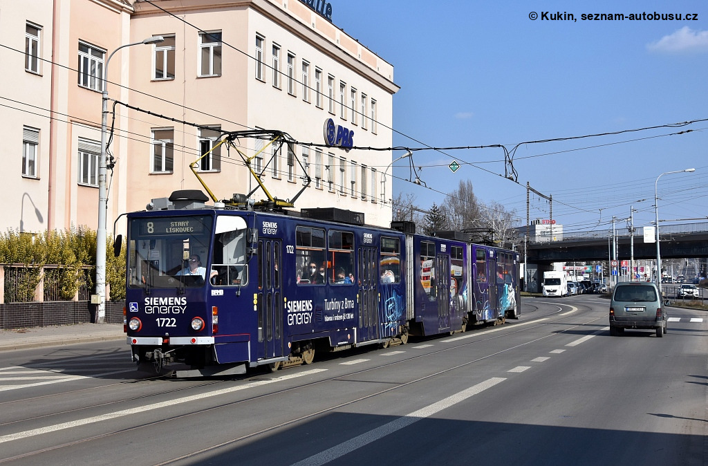Fotografie ČKD Tatra KT8D5R.N2 1722 DPMB | Brno-Černovice, Olomoucká | Fotogalerie BMHD