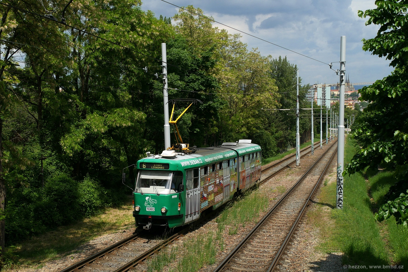 Podél vyšlapané cestičky nejen místními sprejery, kteří neváhají znehodnotit i lak na sloupech trolejového vedení, stoupá vůz 1080 vstříc zastávce Krematorium. Vyšlapaná cestička za vozem směřující přes trať vede do tzv. "Údolí dutých hlav", kde má Policie České republiky umístěn útvar "Policejního vzdělávání a služební přípravy".