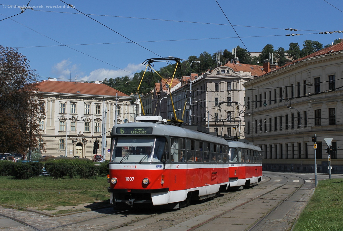 Fotografie ČKD Tatra T3G 1607 DPMB | ČKD Tatra T3G 1611 DPMB | Brno-Staré Brno, Mendlovo náměstí | Fotogalerie BMHD
