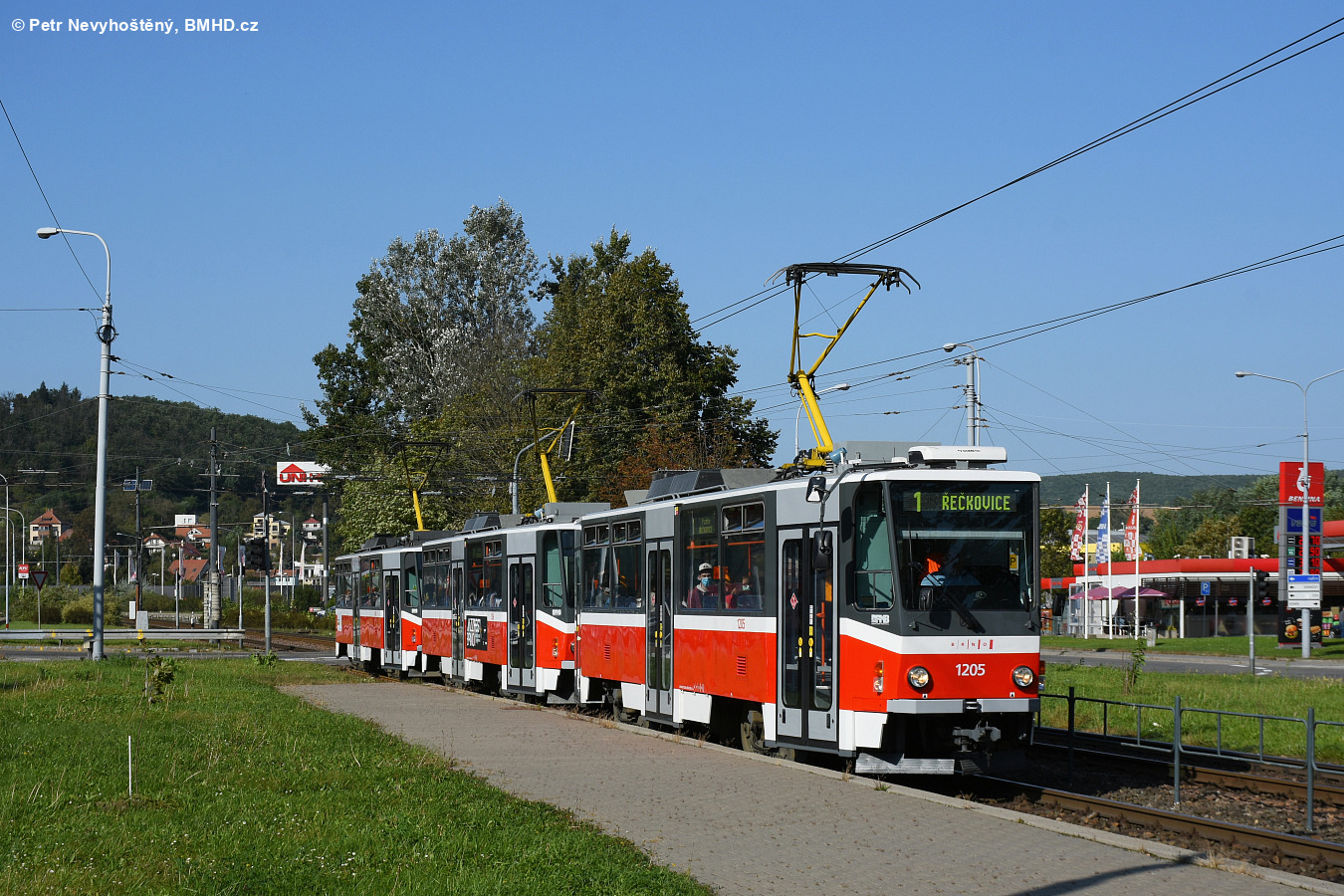 Fotografie ČKD DS T6A5 1205 DPMB | ČKD DS T6A5 1206 DPMB | ČKD DS T6A5 1204 DPMB | Brno-Komín, Bystrcká | Fotogalerie BMHD
