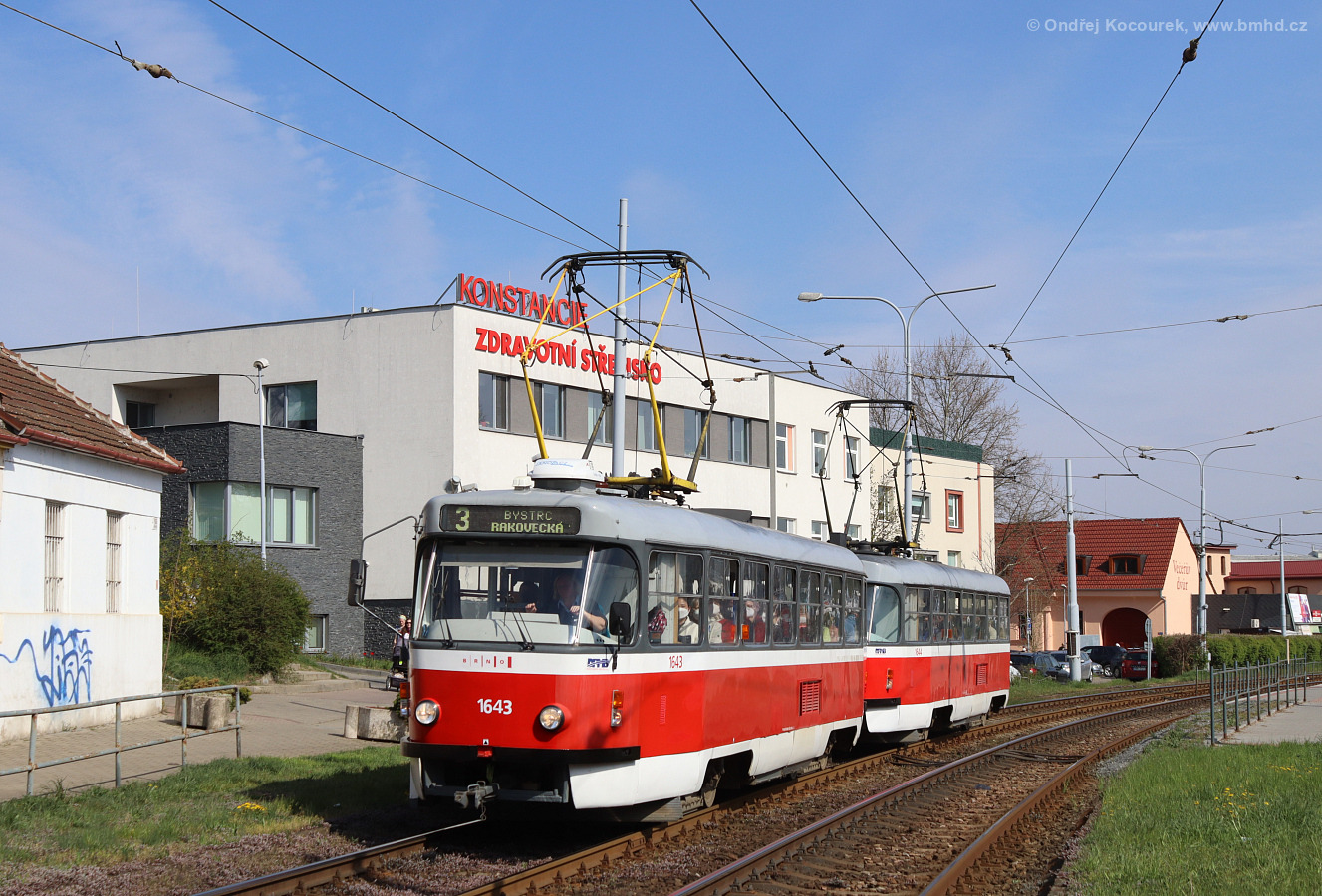 Fotografie ČKD Tatra T3G 1643 DPMB | ČKD Tatra T3G 1644 DPMB | Brno-Komín, Kníničská | Fotogalerie BMHD