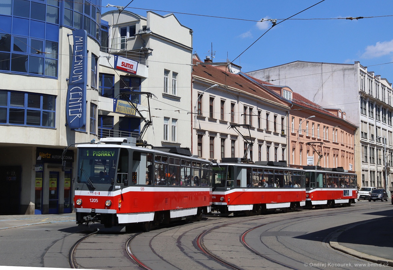 Fotografie ČKD DS T6A5 1205 DPMB | ČKD DS T6A5 1206 DPMB | ČKD DS T6A5 1204 DPMB | Brno-Staré Brno, Hybešova | Fotogalerie BMHD