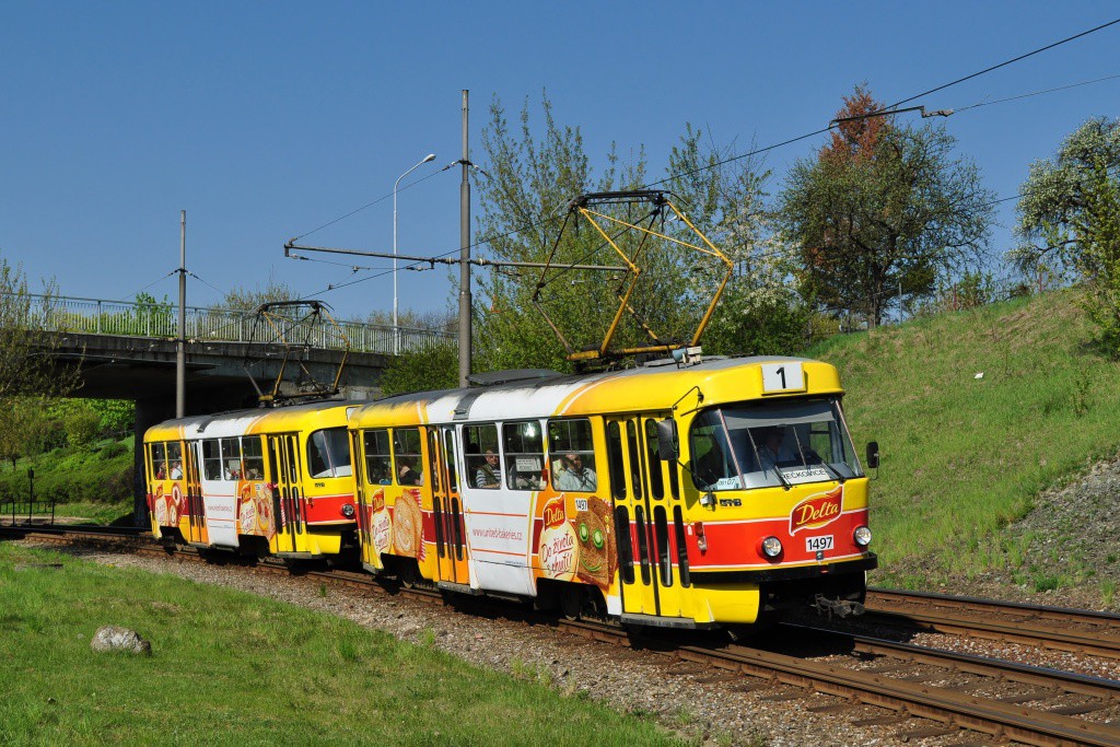 Fotografie ČKD Tatra T3 1497/II DPMB | ČKD Tatra T3 1556 DPMB | Brno-Bystrc, Obvodová | Fotogalerie BMHD