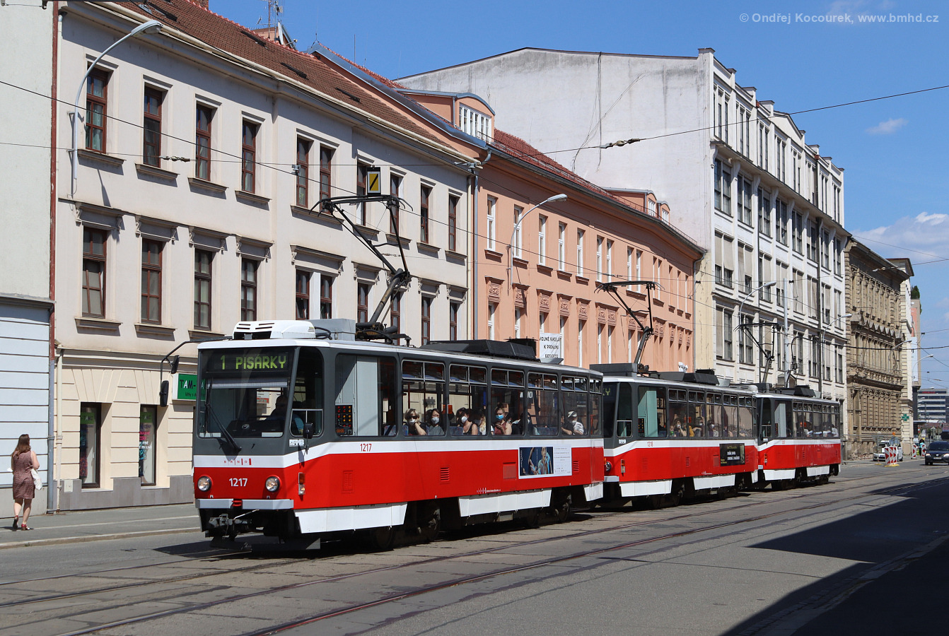 Fotografie ČKD DS T6A5 1217 DPMB | ČKD DS T6A5 1218 DPMB | ČKD DS T6A5 1207 DPMB | Brno-Staré Brno, Hybešova | Fotogalerie BMHD