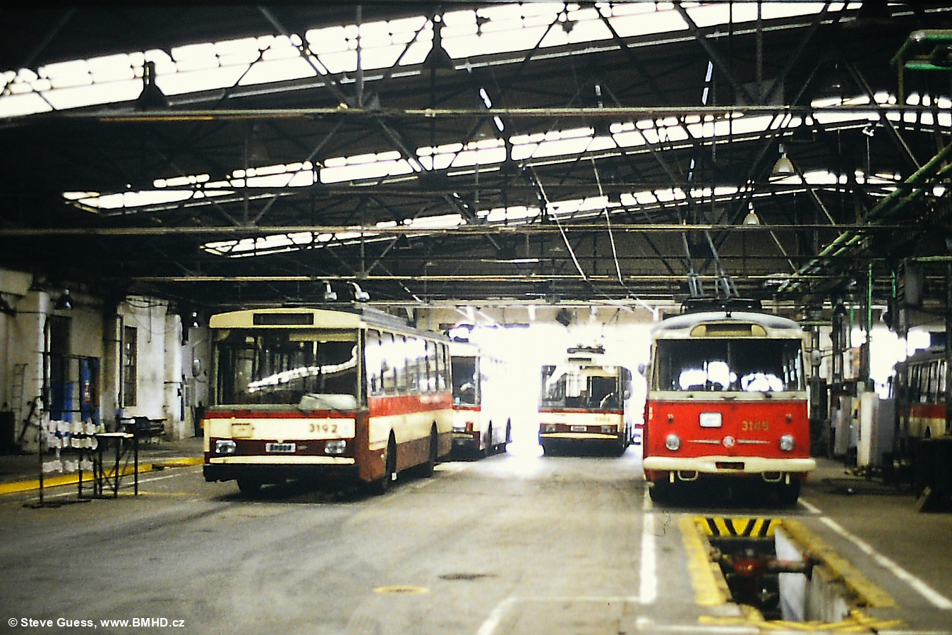 Fotografie Škoda 14 Tr05 3192 DPMB | Škoda 9 TrHT28 3145 DPMB | Brno-Husovice, vozovna Husovice | Fotogalerie BMHD