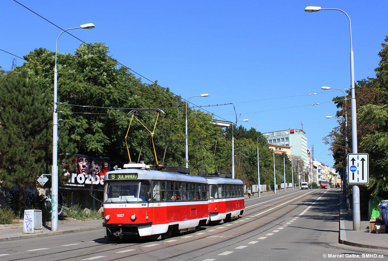 Fotografie ČKD Tatra T3G 1607 DPMB | ČKD Tatra T3G 1611 DPMB | Brno-Černá Pole, Milady Horákové | Fotogalerie BMHD