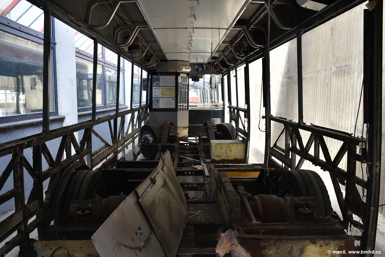 interiér rozebraného trolejbusu 21Tr 3060 před sešrotováním