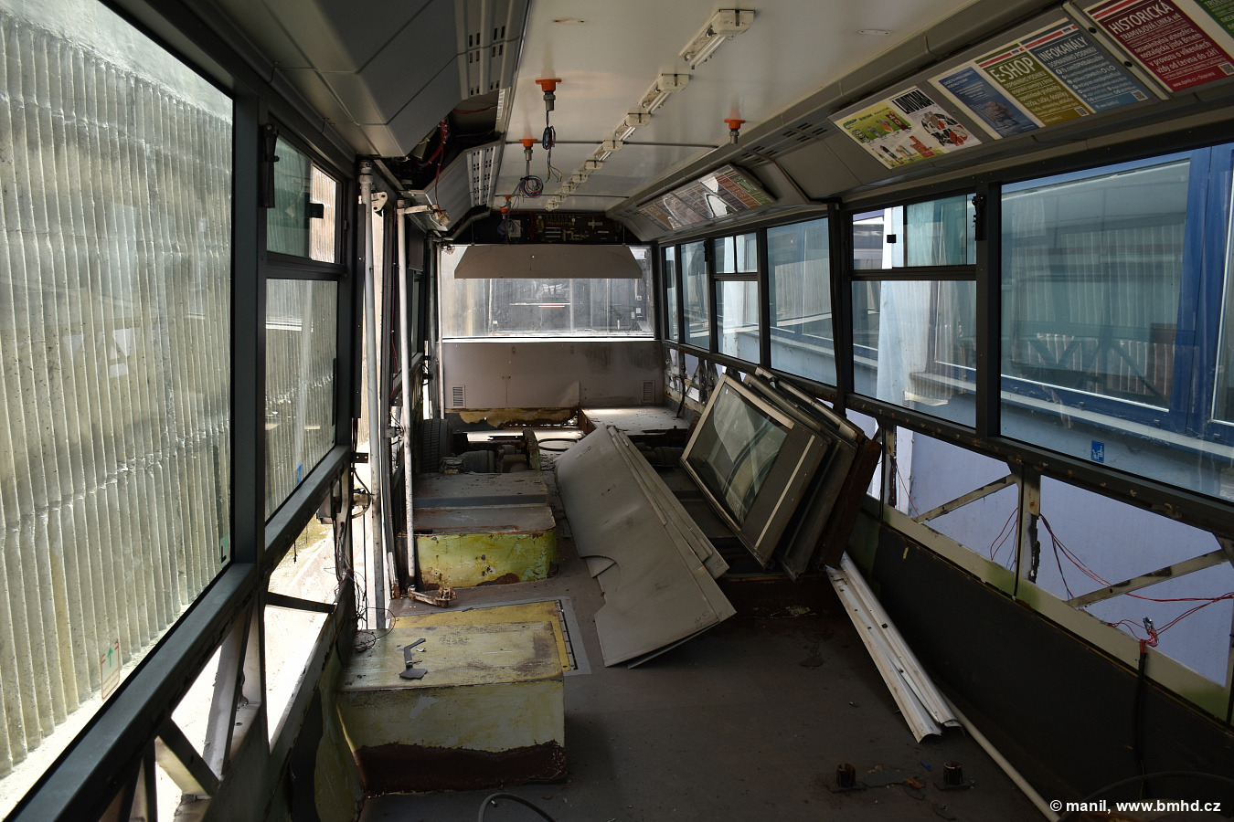 Interiér rozebraného trolejbusu 21Tr č. 3057 před šrotací