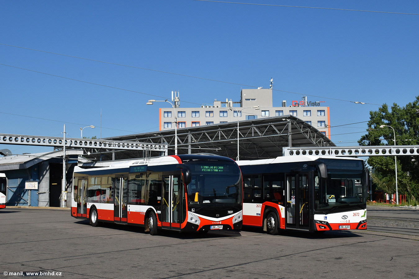 Fotografie SOR NS 12 7691 (2BK 7945) DPMB | Solaris Urbino 18 IV 2672/II (2BK 6493) DPMB | Brno-Medlánky, vozovna Medlánky | Fotogalerie BMHD