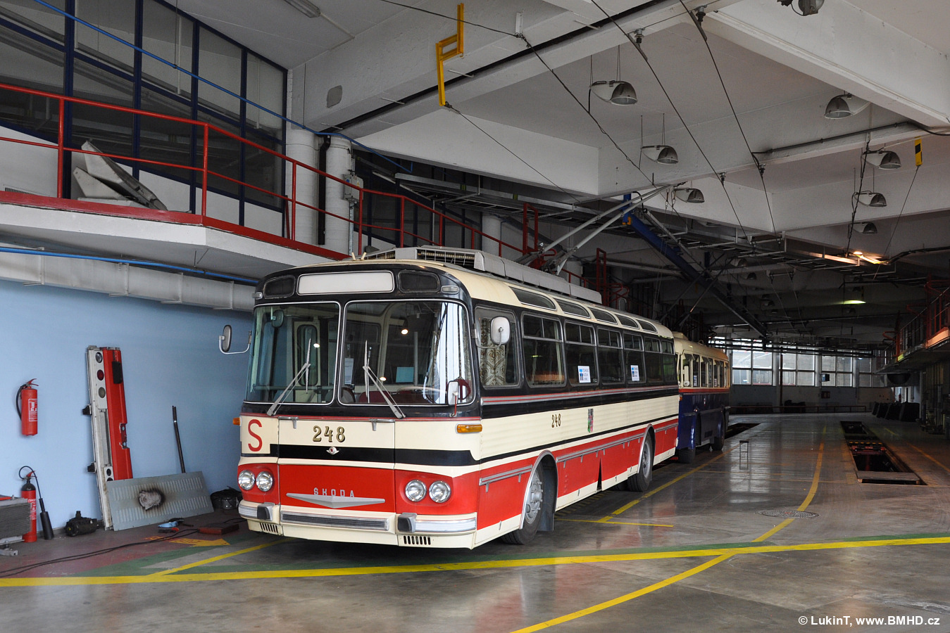Na oslavy 80 let provozu trolejbusů v Plzni a 85 let výroby trolejbusů Škoda byly do Plzně zapůjčeny tři trolejbusy TMB - 6Tr, 7Tr a T11. Dva z nich jsou na snímku zachyceny na hale LÚ Komín během příprav před nakládkou, která proběhla následující den.