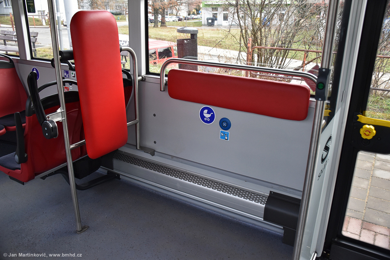 Prostor u druhých dveří, ve kterém je namísto sedaček další prostor pro kočárek.