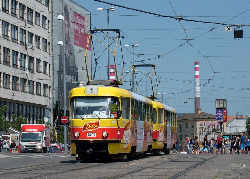 Fotografie ČKD Tatra T3 1497/II DPMB | ČKD Tatra T3 1556 DPMB | Brno-střed, Nádražní | Fotogalerie BMHD