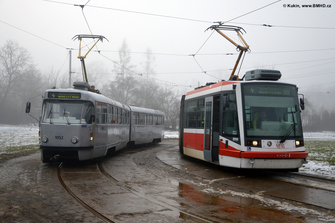Fotografie ČKD Tatra K2P 1052 DPMB | Škoda 03T6 1816 DPMB | Brno-Obřany, Babická | Fotogalerie BMHD