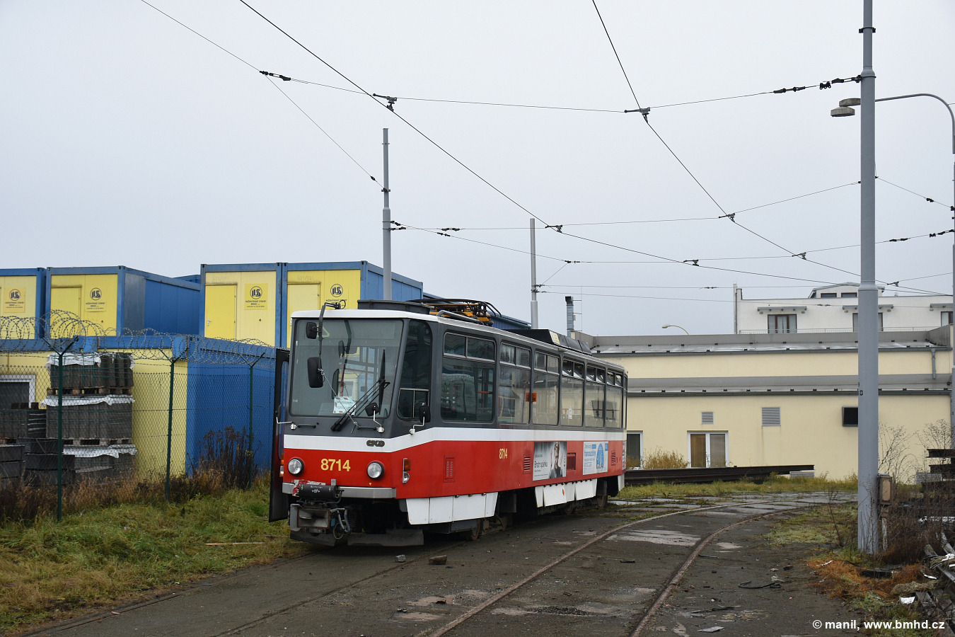 T6A5 1243 (ex 8714 DPP) odstavená ve vozovně Medlánky čeká na zprovoznění
