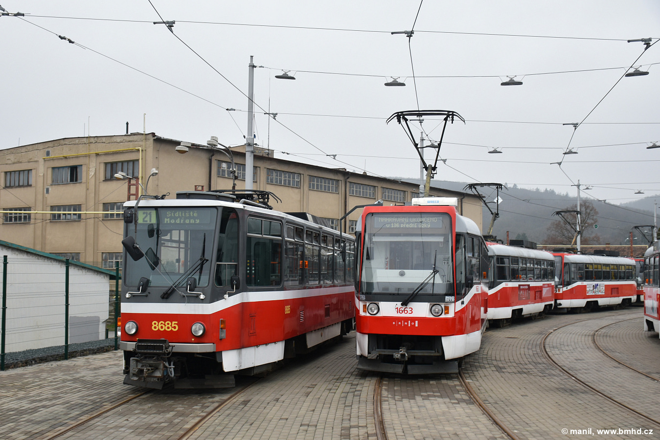 Fotografie ČKD Tatra T6A5 1232 DPMB | ČKD DS T3R 1663 DPMB | Brno-Pisárky, vozovna Pisárky | Fotogalerie BMHD
